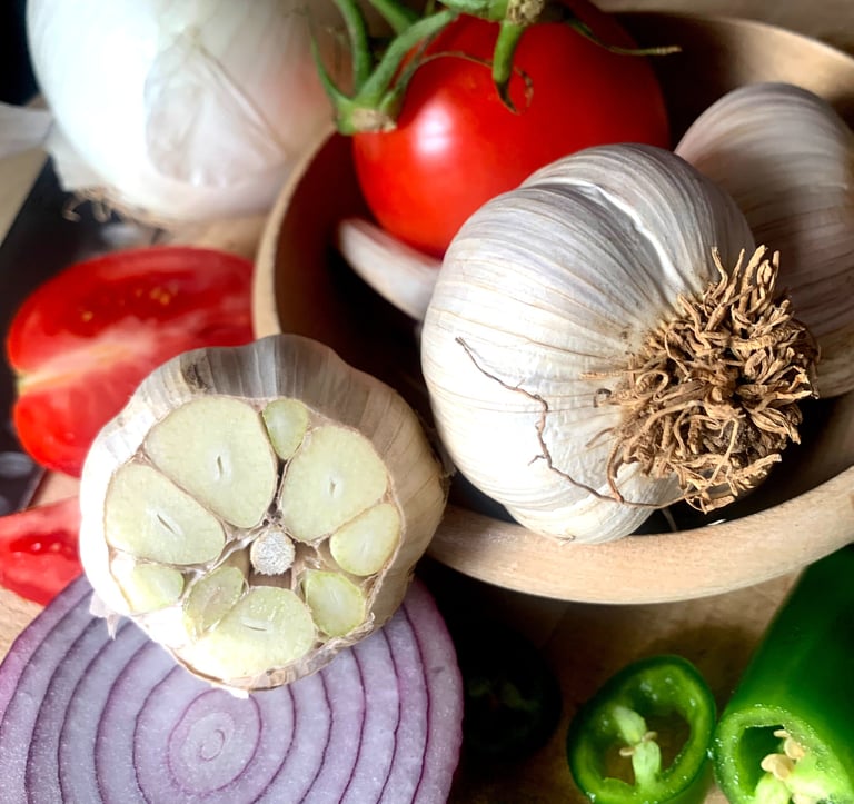 Bold and hot, this porcelain variety is a favorite in salsas and hot sauce. The large cloves are easily peeled. Porcelain garlic is similar in flavor to Rocambole but have a longer storage life--around eight months.